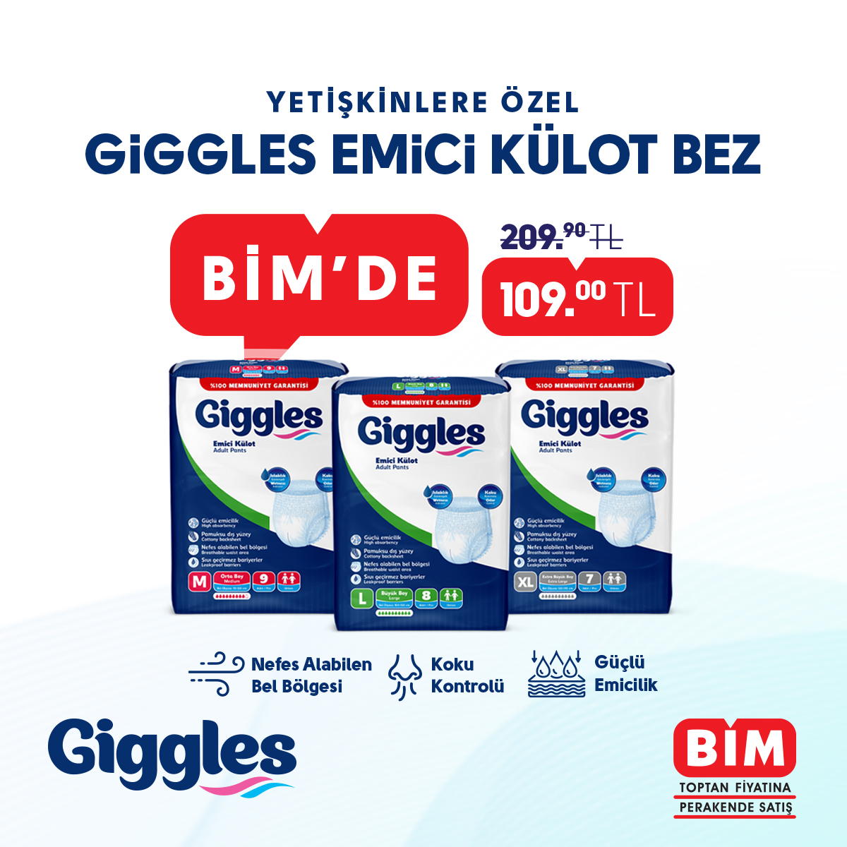 Giggles Yetişkinlere Özel Emici Külot Bez Gaziantep ve Kilis Bim Mağazalarında...