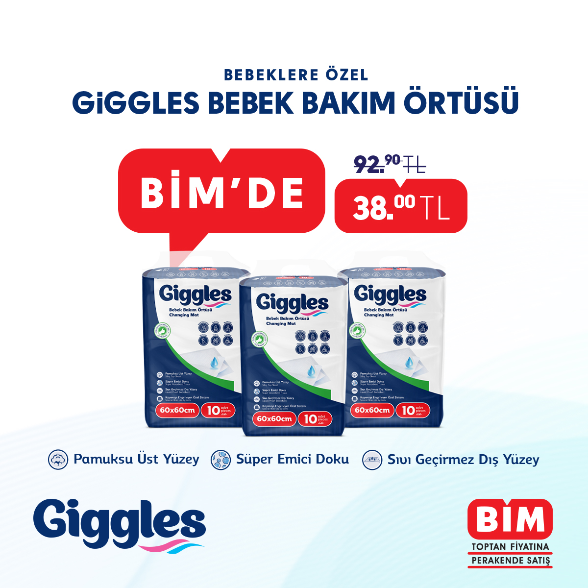Giggles Bebek Bakım Örtüsü Gaziantep ve Kilis Bim Mağazalarında...